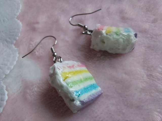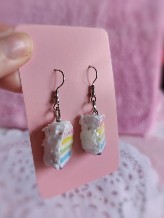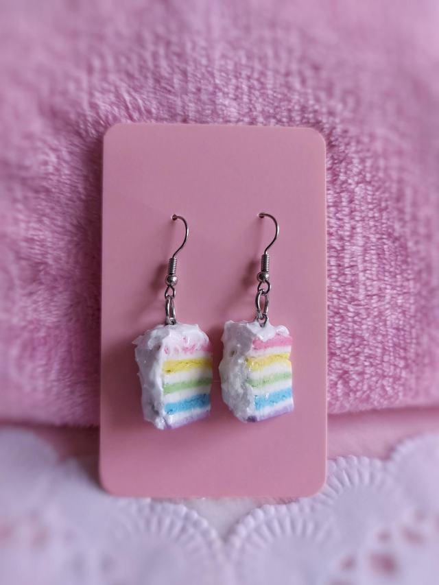Boucles d'oreilles façon Rainbow cake 🌈 Réalisées en argile colorée et pailletée, et protégées par un vernis glassificateur et resine UV ✨️