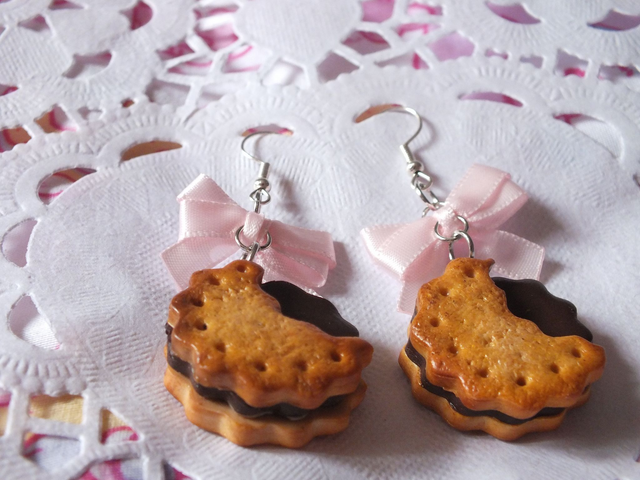 🍫🍰 Boucles d'oreilles en forme de sablé croqué parfumées au chocolat 🍰🍫