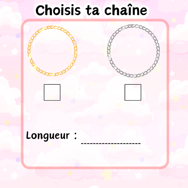 -> Après le paiement de ta commande tu recevras un mail avec un formulaire afin de me faire parvenir toutes les informations dont j'aurais besoin pour effectuer ta personnalisation
