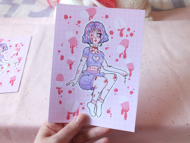 Impression de mon illustration creepy cute "teeth" sur papier photo brillant
