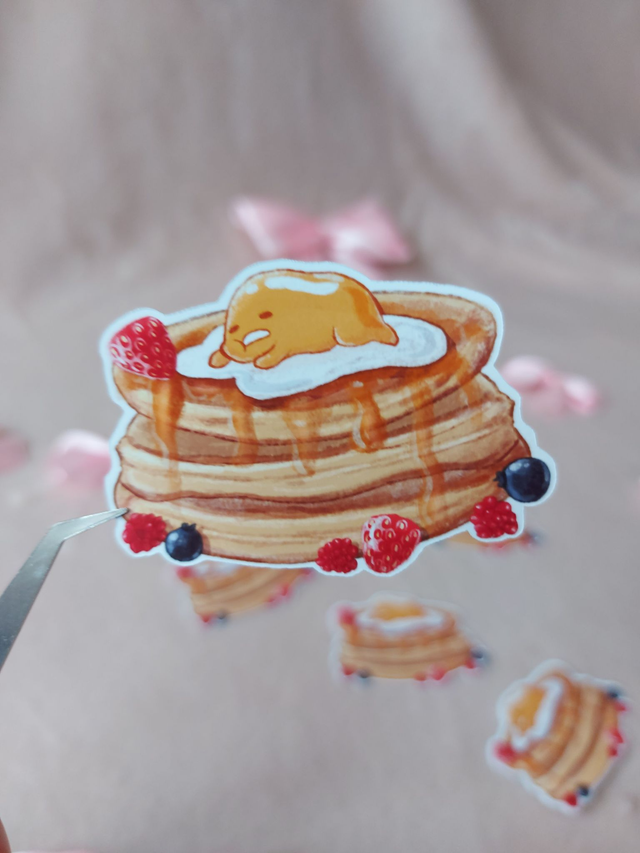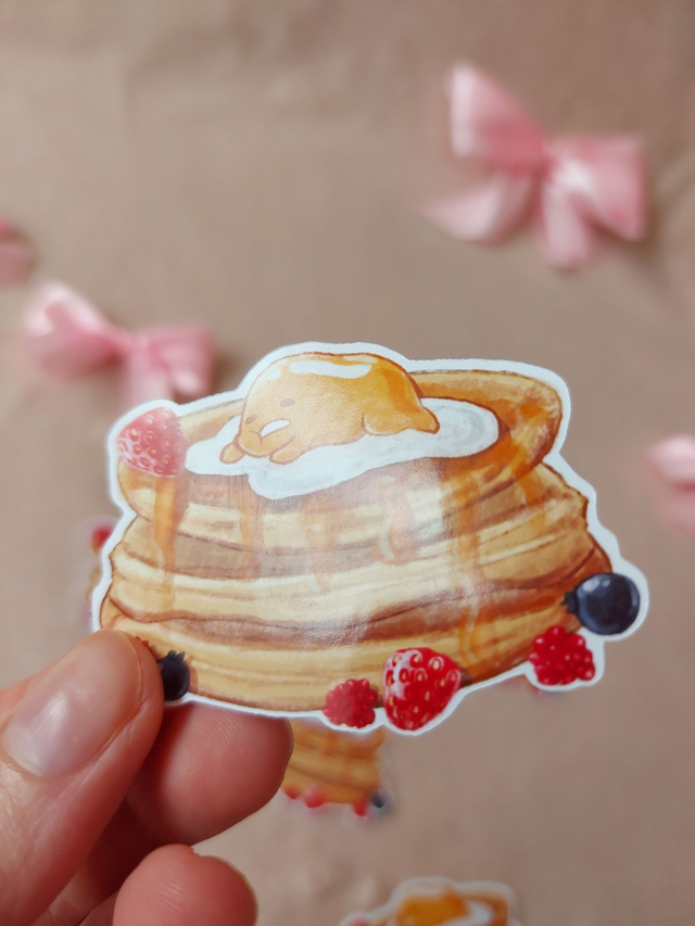 Sticker petit oeuf sur des pancakes ♥ Imprimé sur papier glossy anti-éclaboussures